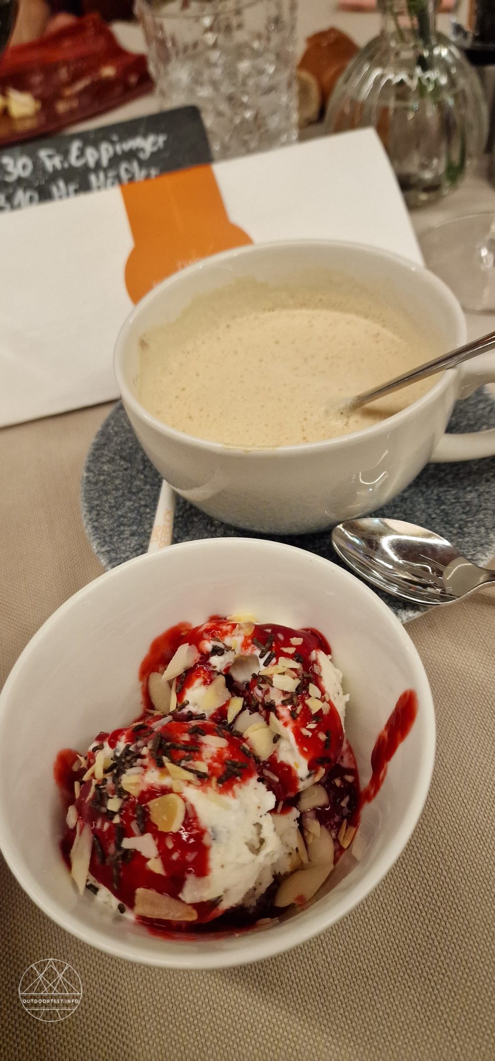 Am Abend erwartet den Gast dann ein genussvolles, mehrgängiges Menu mit umfangreicher à la carte Auswahl.