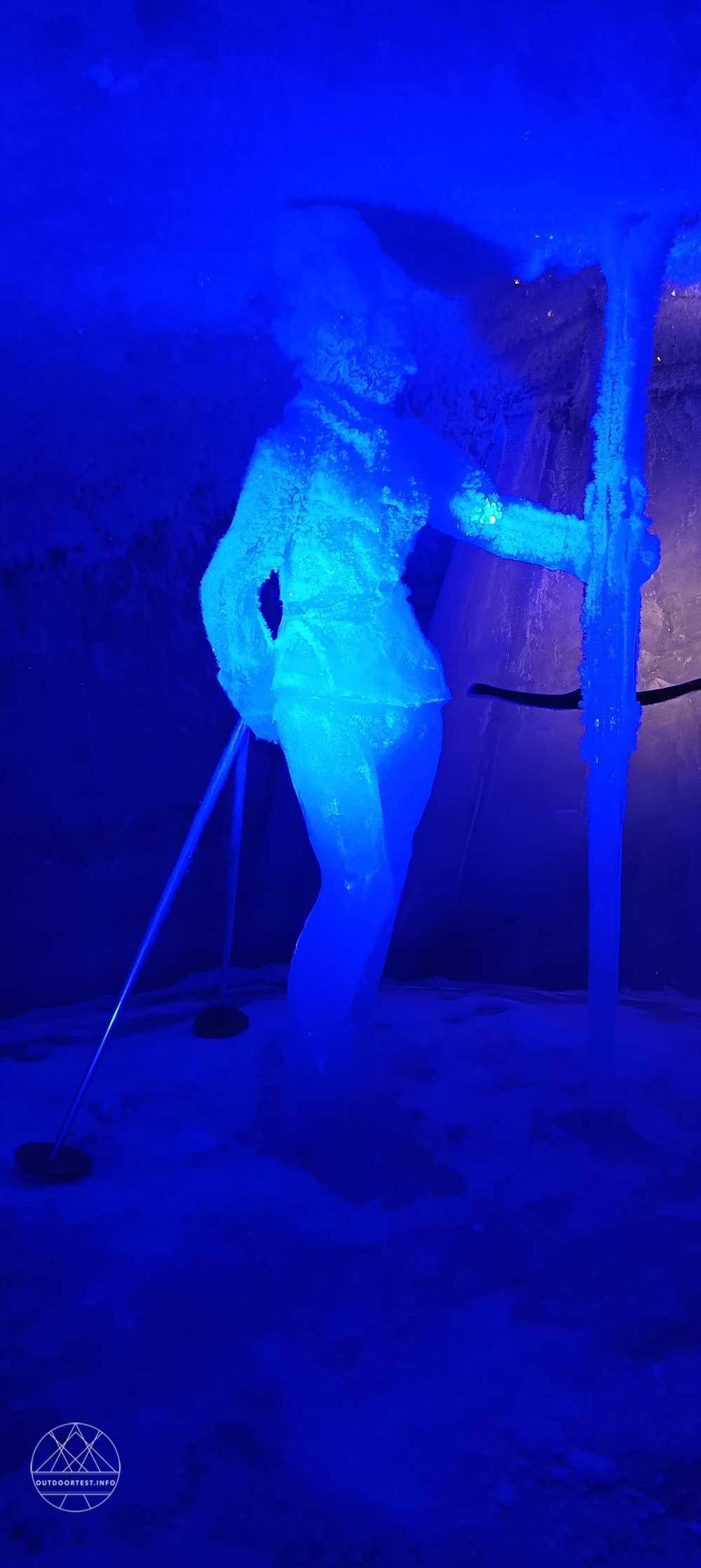 Man begibt sich nach dem Eingang sechs Meter unter das Ewige Eis in die Ausstellung und im Anschluss danach hinauf auf die Berge.