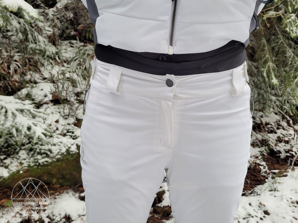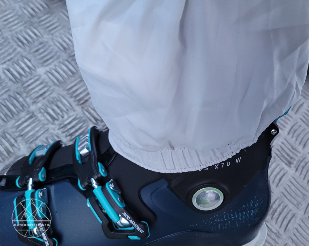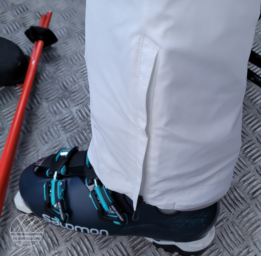 Sehr praktisch sind die Reißverschlüsse an den Beinen. Damit lässt sich die Hose super über die Skischuhe ziehen und anschließend fixieren. Sie wurden mit dem Außenstoff hinterlegt, so dass ein Verhaken des Reißverschlusses an den Schnallen verhindert wird.