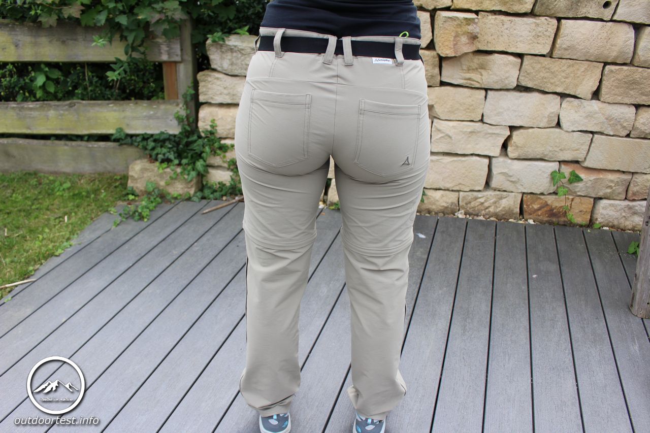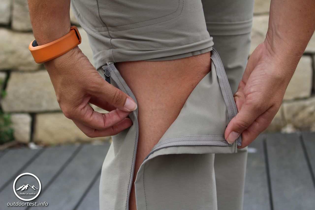Die Hose wurde in Größe 38 im Sommer in den Alpen getestet. Sie ist einfach zippbar. Für Frauen-Zipphosen eher selten aber sehr angenehm oberhalb des Knies. Vermutlich liegt es daran, dass eine Breite Masse bei den Frauen kein Knie oder Oberschenkel zeigen wollen. Aber gerade beim Wandern, wo geschwitzt wird, die Hose irgendwann ein wenig am Körper klebt und bei hohen Tritten sonst der Stoff am Knie spannt, ist eine kürzer gezippte Hose einfach praktischer. Außerdem zippt man/Frau ja, weils warm ist. Bei ¾ langen Hosen und hohen Bergstiefeln und langen Socken ist da nicht mehr wirklich viel freie Haut übrig: nur Wade.