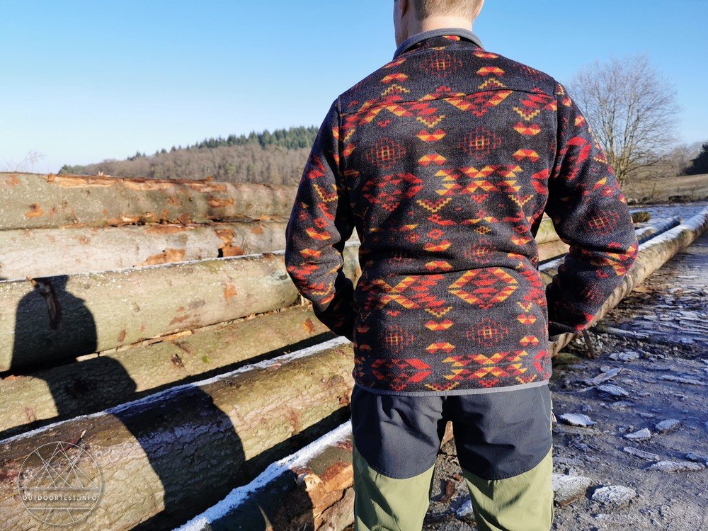 Der Pullover an sich trägt sich sehr bequem. Bei einer Körpergröße von 1,72 m und einem Gewicht von 73 kg, wurde der Pullover in Größe M bestellt. Der Schnitt ist eher Figurbetont, engt aber nicht ein. Das Material dehnt sich bei Bewegungen gut mit, so dass man immer ein gutes Gefühl hat beim Tragen. Hierzu tragen auch die Raglan-Ärmel bei.
