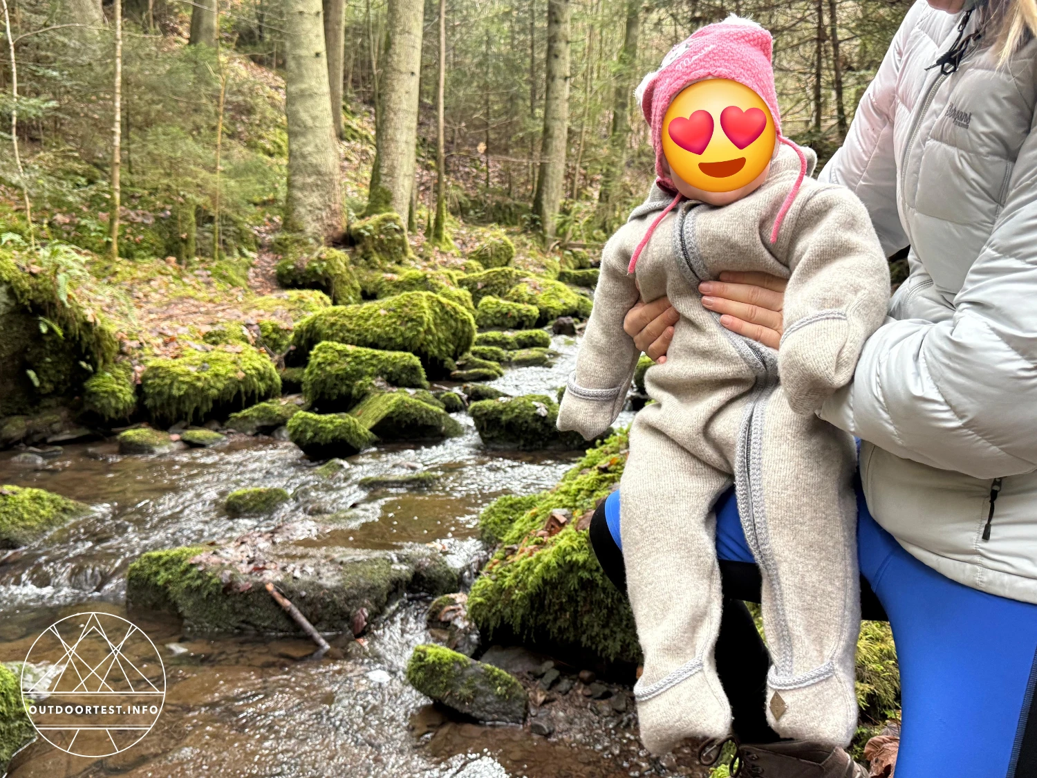Der gewalkte Lammwollstoff hält wunderbar warm, ohne dass meine Tochter ins Schwitzen gerät. Auch wenn man sie nach einem Spaziergang im Kinderwagen schlafend in einen Innenraum stellt, ist sie danach nicht nassgeschwitzt unter dem Overall. Außerdem ist der Donnerstein leicht wasserabweisend, was bei feuchtem Wetter oder kurzen Ausflügen im Kinderwagen sehr praktisch ist. Ich schätze es sehr, dass der Overall aus 100 % natürlichen Materialien besteht und in Österreich gefertigt wird – das gibt mir ein gutes Gefühl in Sachen Qualität und Nachhaltigkeit.