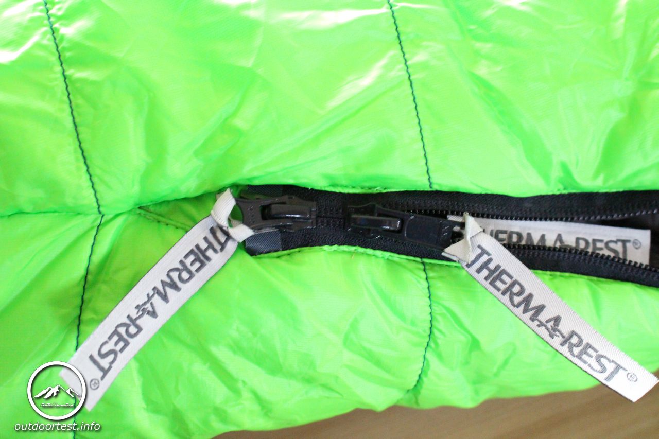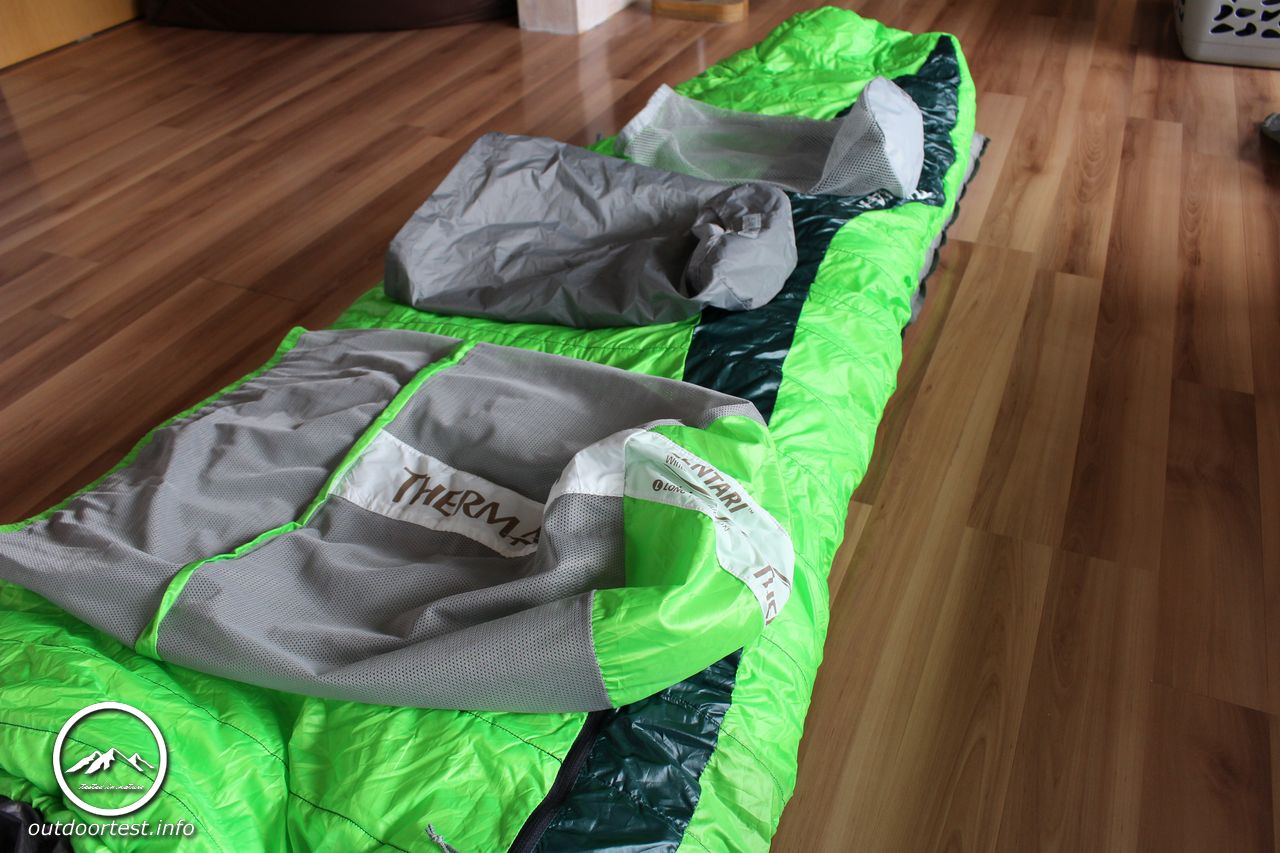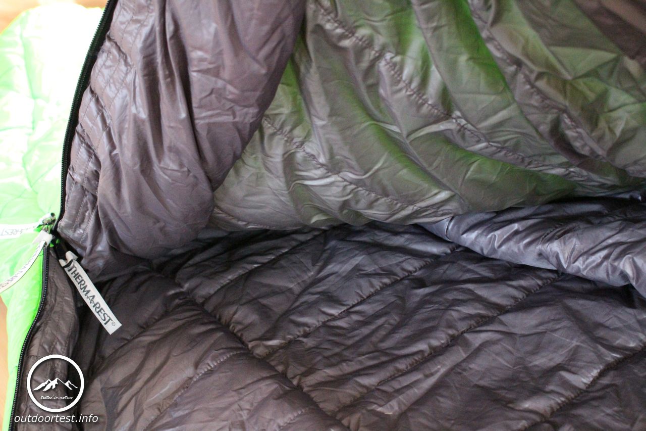 Nach dem Auspacken entfaltet der Schlafsack seine wirkliche Größe und so erklärt sich auch schnell das Volumen. Er ist spürbar dick, die Isolierungsschicht ist dick wattiert und locker. Der Fußteil ist ergonomisch vorgeformt. Der lange Reißverschluss ist von oben und unten zu öffnen. Der gesamte Reißverschluss ist von einer Wulst überdeckt, die ebenfalls dick wattiert ist um Kältebrücken zu verhindern. Leider gelingt dies nur teilweise. Die Wattierung wäre absolut ausreichend. Allerdings gerade weil die Wulst so prall ist ragt sie meist in das Schlafsackinnere hinein anstatt flach auf dem Reißverschluss zu liegen und legt diesen dann doch an vielen Stellen frei. Hier wären ein paar wenige Anknüpfungspunkte in welcher Form auch immer eine sichere Möglichkeit, dies zu verhindern.