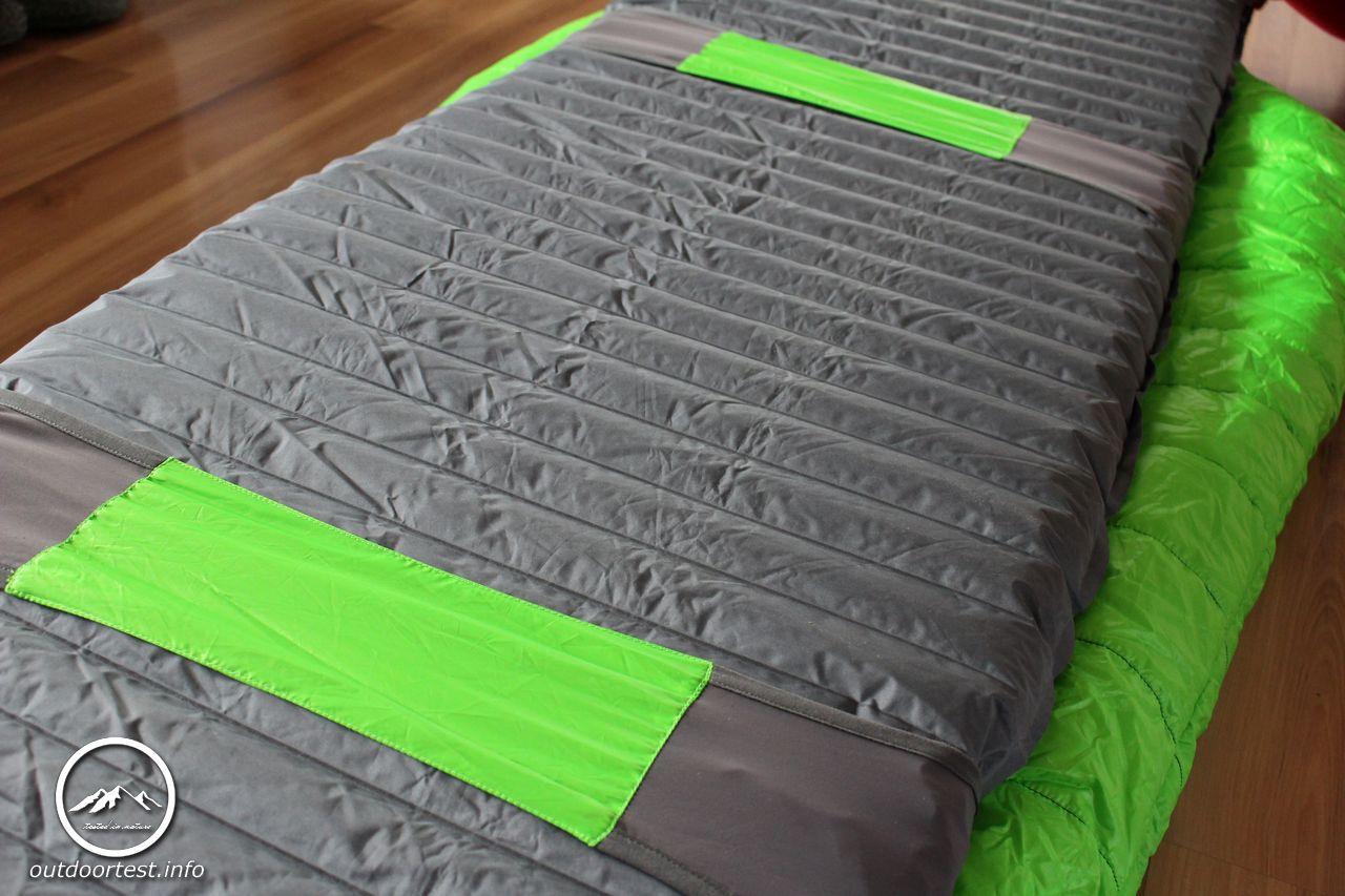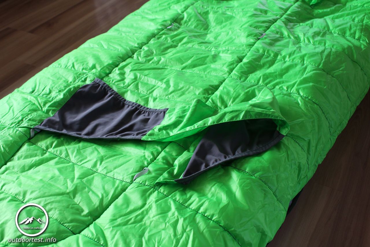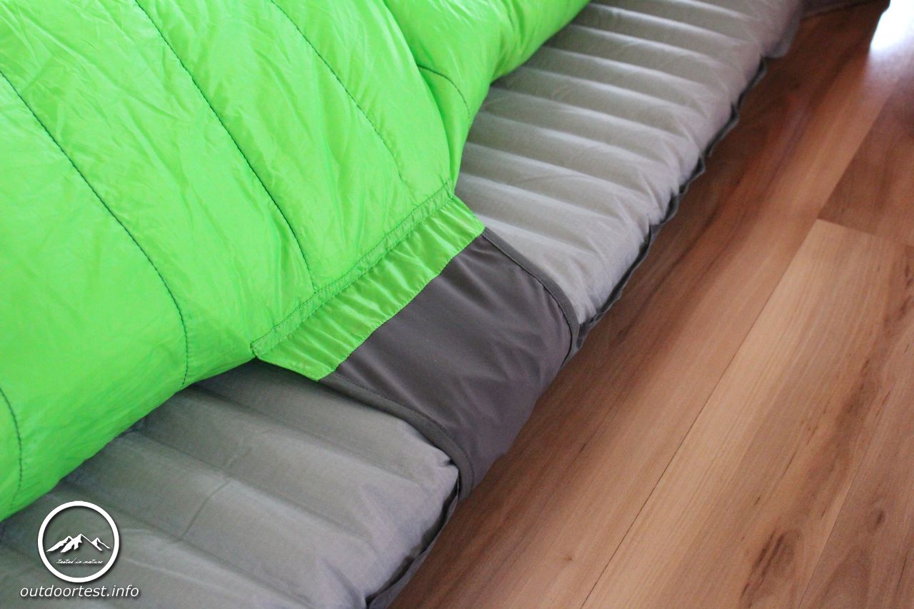 Auf der Unterseite verfügt der Schlafsack über die vom Hersteller als Synergy Link Isomattenverbinder bezeichneten Schlaufen, welche es ermöglichen den Schlafsack mit der Isomatte zu verbinden. Bei einer Liegebreite der Isomatte von nur 50 cm verhindert dies das zwangläufige Runterrutschen im Schlaf, da die Materialien einfach nicht genug Haftungsreibung entwickeln. Da die Bänder elastisch sind, entsteht kein Gefühl des Festgebundenseins.