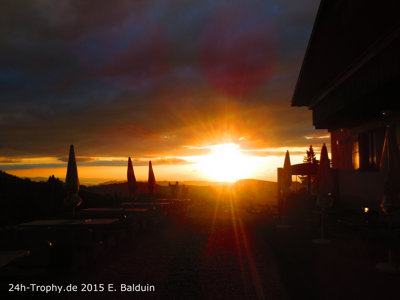 Nachdem die Sonne fast den ganzen Tag hinter einer Wolkendecke verschwunden war, belohnte sie das Ende der ersten 12-Stunden-Etappe mit einem wunderschönen Sonnenuntergang über dem Bodensee.