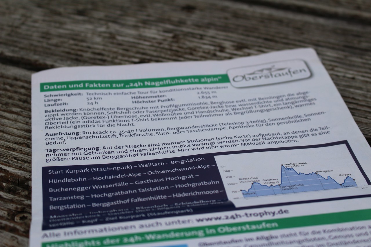 Wahlweise 12 oder 24 Stunden wandern, geführt mit ortskundigen Bergführern, voll verpflegt mit Abholshuttle für den Notfall, Karten- und Infomaterial, T-Shirt und und und.
