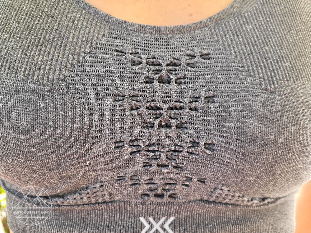 Für den Tragekomfort sorgen spezielle Technologien, die schon mit dem bloßen Auge an Rücken und der Mitte der Brust erkennbar sind. Diese Y-förmigen Elemente maximieren die Kühlung, da sie die Feuchtigkeit effizient nach außen weiterleiten. Selbst bei sehr schweißtreibenden Sporteinheiten hat man kein Nässegefühl auf der Haut. Unter den Achseln sind zusätzlich spezielle Einsätze, die Feuchtigkeit auffangen bevor sie fühlbar wird. Insgesamt sorgt der Energizer für ein angenehmes Hautklimamanagement.